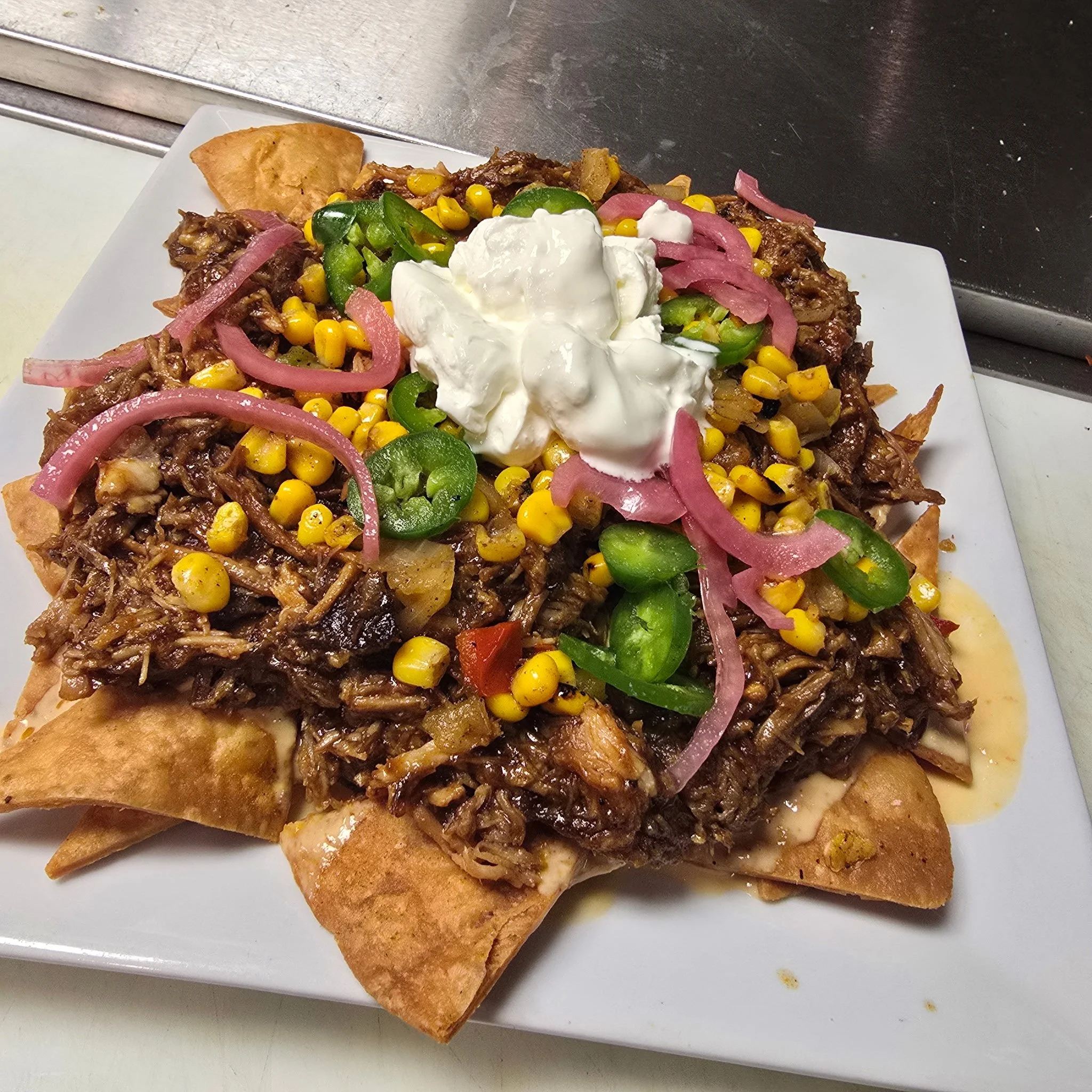 Weekly Specials Thursday April 16th through Tuesday April 21st $7 Cheese Stuffed Sweet Plantains (Maduros) (2) Served with mayo ketchup $7 $16 BBQ Pernil Nachos Slow roasted pernil (pork), BBQ, house cheese sauce, corn salsa, pickled red onions, jalapeños & sour cream $16